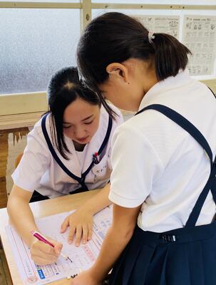 44名の天高生が3、4、5、6年生の夏休みの宿題のお手伝いをしました。