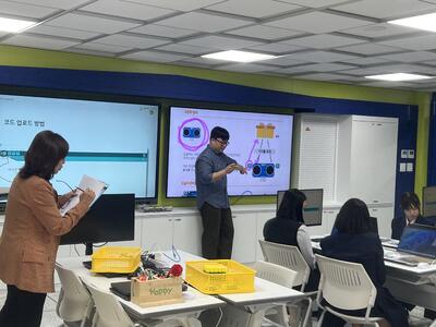 昨年10月に韓国を訪れ、姉妹校である土坪(トピョン)高校で親善交流を行ったことについて、訪問団14名を代表して発表を行いました。