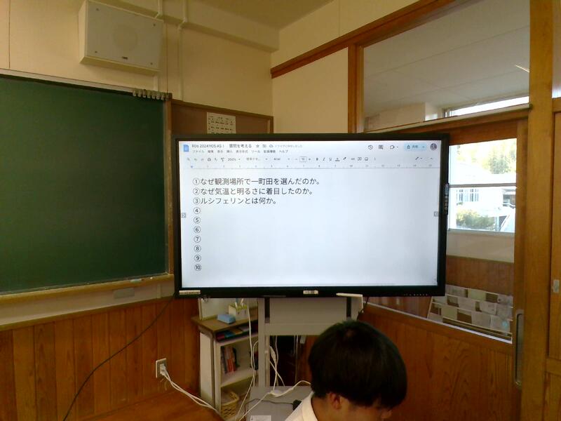 講義後の演習では、順番がシャッフルされたスライド(科学部作成)の並び替えを個人→クラスで検討しました。
