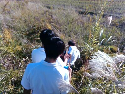 さて、活動が始まると、「芝」班は育成中の芝の生育状況の確認と葉の採取に、「ヒガンバナ」班はもちろん実験に用いる彼岸花を取りに、そして「耕作放棄地」班は、雑草の状況を測定しに、それぞれ元気よく飛び出して行きました(すみません、あまりに早かったので追いつかず、今回写真がありません,,, 次回こそ!)。クロームブックや論文とのにらめっこそろそろ、じっくりディスカッションすることももちろん大事ですが、やはり、そろそろ実際にアクションを起こし、データを集めていきたいところです。