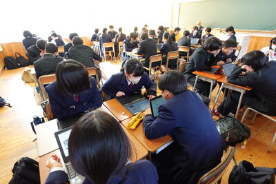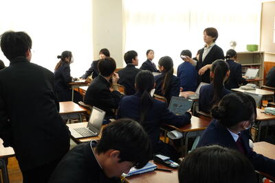 6限目は、これまでスキルアップ講座で学んできた、情報やデータを収集するスキルやそれをわかりやすい形に処理し表現するスキル、分かりやすく相手に伝わるプレゼンのスキルなどを活かしてグループで協働してスライドを作成し、グーループ同士でプレゼンをし合う活動に取り組みました。スキルアップ講座で学んだスキルをどれだけ活用することができたでしょうか?3学期はいよいよ各自が研究したい分野やテーマに基づいてグループをつくって研究活動を進めていきますスキルアップ講座で学んだスキルを活かしてより良い研究に繋げていけるように頑張りましょう!