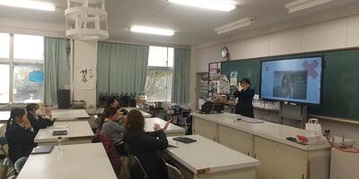 After school, we could hear some English conversation coming from the Earth Science room on the second floor of the Science building. What is it?” Peeking in, we found some SSH Taiwan Study Tour participants. They are practicing presentations with Zoe and Jennifer, who are both assistant language teachers (we call them "ALTs”).