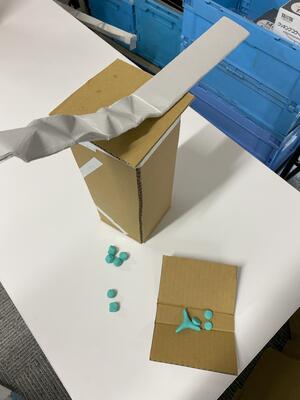 A テトラポットを積んだときのテトラポット間の面積を測ろうとしています。初めは水で測ろうとしていたのですが、3Dプリンターで作ったテトラポットは水に浮いてしまうのと、材質的に水を吸収する可能性が考えられるため、水ではなく砂で測ってみようと考えました。