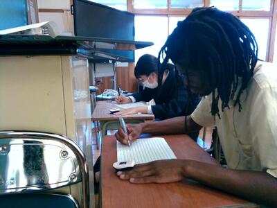 In ATⅠ, students go to many different classrooms to meet in groups. However, there is only one room in which both 2nd and 3rd graders meet in the same period - the Earth Science room.  2nd graders can envision what they will be doing in the future through seeing what their seniors are doing now: writing proposals to Amakusa city with their research results.  The result? A unique atmosphere that could help younger students a lot!