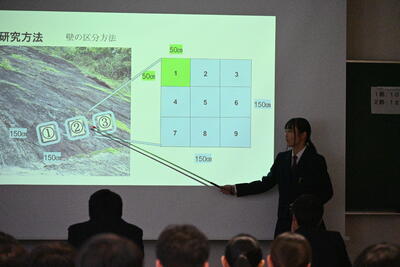 最後に、教頭先生から講評をいただきました。研究の質を高めるためにも質疑応答を大切にしてほしいことや、データの質と量にこだわり、どのような数値が必要なのかをしっかり考えてデータをとっていってほしいということなどを話されました。今回の発表会の経験を今後の研究や発表に活かし、計画的に研究を進めていって欲しいと思います。