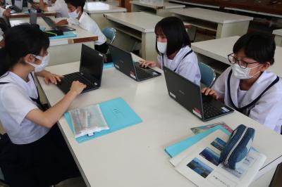 CBT形式(Computer Base Test)で90分間(教科書等の持ち込み可) で行われるテストに、全員が集中して取り組んでいました。