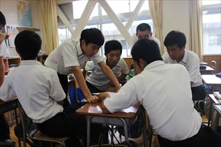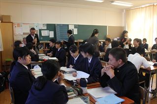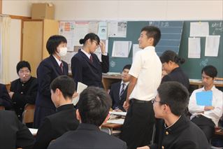 1年古典の研究授業です。漢文「寒翁が馬」を題材に、本日はディベートを行いました。
