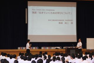 7日(土)、1年生第2回進路講演会です。熊本工業高校副校長の馬場純二先生をお迎えし、「生きていくための学びについて」と題し講演いただきました。