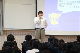 初めに菅副校長先生より、「何事も最初が肝心で、最初の選挙に行くことが大切である」「選挙に行く習慣を付けよう」というお話がありました。桑野先生からは、「若者が投票に行き、自分の希望や国への要望をきちんと声にして伝えることで、国も動いてくれる」といったお話があり、また、選挙についてのクイズなどを通して理解を深めることができました。