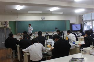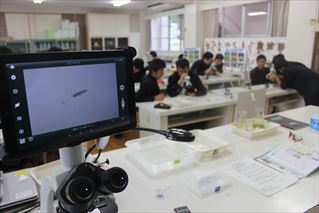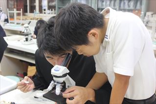 一年生の生物です。本日は、実験・研究の基礎となる顕微鏡の使い方を学びました。