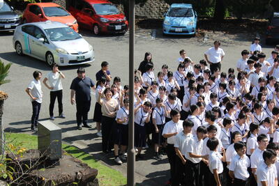 生徒たちは静かに校舎内からグラウンドに避難しました。