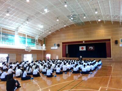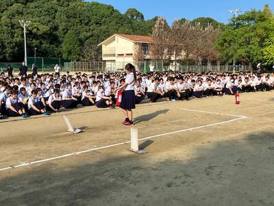 生徒代表あいさつを行った2年6組生田さんと池﨑さんの言葉には、先生方からいただいたひと言ひと言をしっかりと心にとめて、気を引き締めて親善交流を行おうという気持ちがあふれていました。