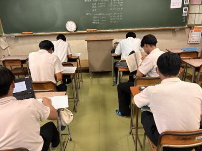 放課後の教室をのぞいてみると、明日の中間考査に向けて勉強している生徒達の姿がありました。