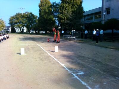 避難後、各学年から2人ずつ消火訓練に参加しました。