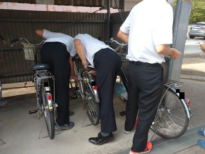 放課後には、自転車通学時の安全を図るため、自転車点検が行われていました。