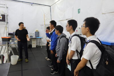 機械航空学科の佐藤裕崇教授にお世話になる今回の研修ですが、生徒たちが先生にお会いするのは3月に本校で行ったSSH特別講演会以来です。研修は先生の研究内容を含むショートトークで始まります。先生がなぜ「昆虫サイボーグ」の研究をされているのか、どのような仕組みなのか、また、他大学との研究との違いはどのようなものか、この研究をいつ、どのように活かしていきたいと思っているのか。はじめは緊張のあまり表情も硬かった生徒たちですが、先生の飾らないお人柄と、生徒たちにも分かりやすくかみくだいて説明してくださる優しさに触れ、少しずつですが発言ができるようになってきました。その後は、研究や講義で使用されている大学の施設や研究室などの施設のツアーをしていただきました。現地の学生が勉強している姿を間近で見ることもでき、生徒にとって大学生活を肌で感じる機会となりました。また、NTUの整った施設や初めて見る機器などに驚きと発見の連続だったようです。研究室の学生さんたちにもとても丁寧に接していただき、英語に苦戦しながらもなんとか午後からの実験の準備を終えた生徒たちでした。