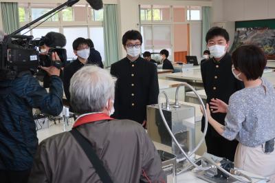 レポーターの方の質問に答えながら、研究内容を一般に方々にもわかりやすくプレゼンをしていました。