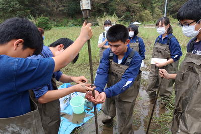 天草にも大量に発生するクラゲの有効活用ができないかと考え、農薬に混ぜることはできないかという研究をしている班があります。