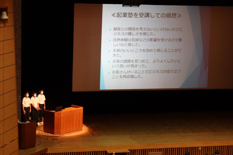 8月2日(日)、天草市民センター大ホールにおいて、天草宝島起業塾高校生コースの最終発表会が行われました。