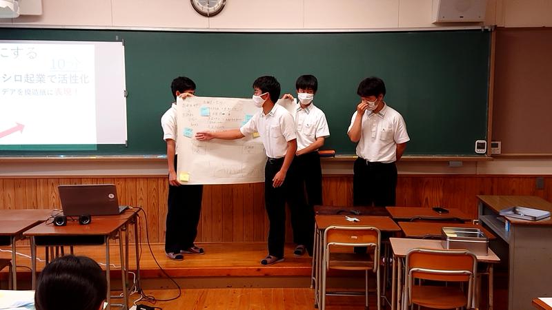 その後、天草の良さや課題を、グループで出し合い、現時点のビジネスプランを発表しました。