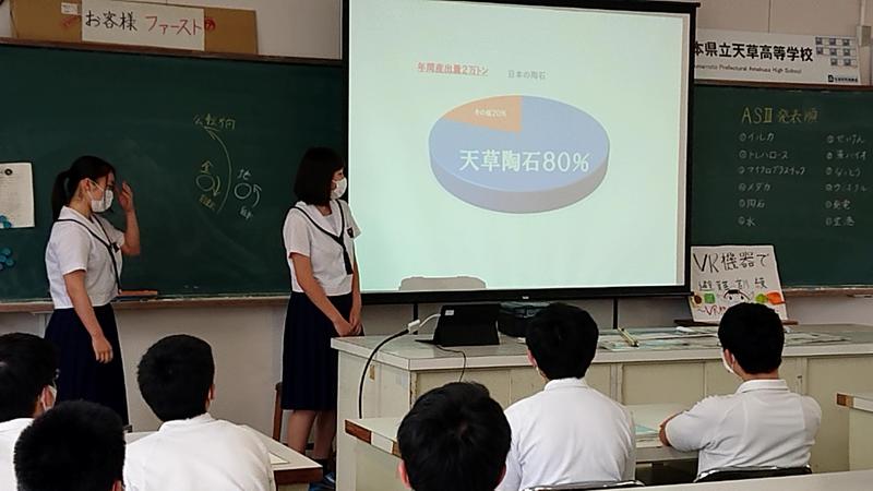 6限は天草市役所水産振興課の山岡様から「天草の水産業」、農業振興課の山﨑様から「天草の農業」についての講義の動画を視聴しました。