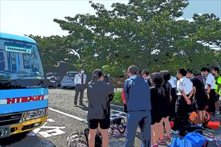 各部活動ごとにバス乗り込み、元気に出発しました。応援よろしくお願いします!