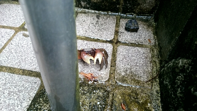 豊かな自然環境の中で学ぶ天高生と、生活するカニの共存。