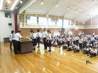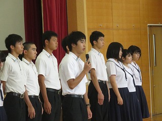 次に、野中生徒会副会長から「心のきずなを深める月間」についての説明があり、6月は改めて人とのかかわり方を見直す月としてほしいといわれました。