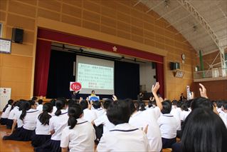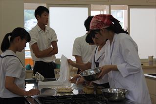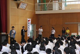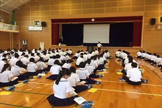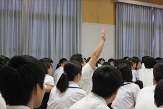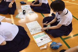 9月14日(木)のLHRを利用し、防災教育の一環として、熊本県立大学生、生田さんはじめ、計9人による防災ワークショップが行われました。