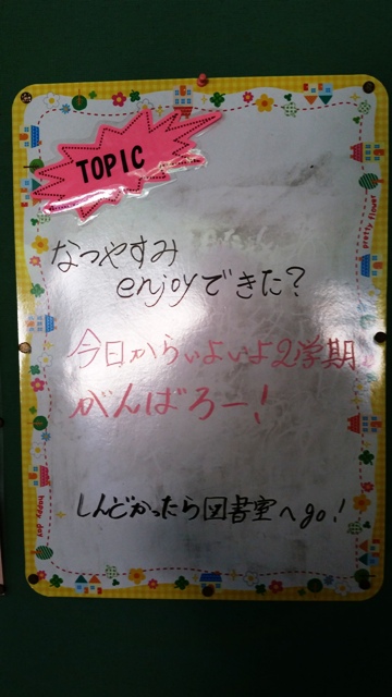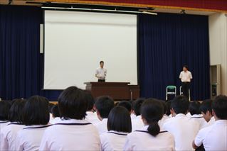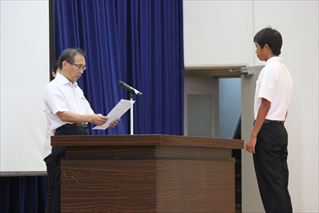 本日より、2学期です。始業式・表彰式に先立ち、新しく着任された3名の先生方の紹介がありました。