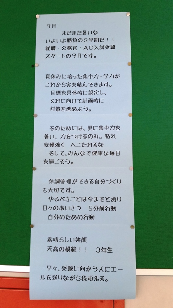 校内のあちこちでは、生徒の皆さんに向けたメッセージが貼ってあります。