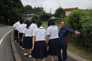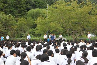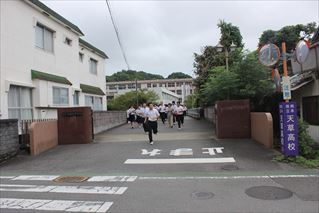 その後、津波を想定した訓練として、本校近くの緑山公園に避難し、全校生徒が20分で集合完了しました。今回の訓練にあたり、上川原緑湧水会の皆さまには事前に緑山公園の除草作業やトイレ掃除までしていただき大変ありがとうございました。そして、熊本県立大学の学生の皆さまを始めとして多くの方のご協力いただきました。心よりお礼申し上げます。