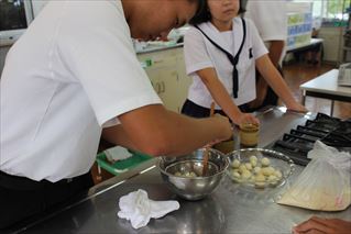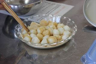 一年生の料理実習です。10月4日中秋の名月を前に、2週連続で「手作り・きな粉団子」に挑戦しました。