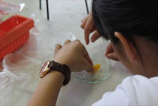 続いて、みかんの薄皮をつるりと剥くための実験も行ないました。