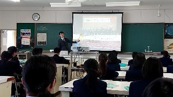 課題研究アドバイザーの宮崎先生から、課題研究をする際に大事なことや、身に付けてほしい資質.能力について学びました。