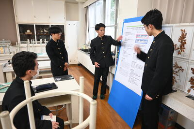 ポスターの第一次提出は3月4日(月)となっています。3月14日(木)の「ミニ発表会」は、今年度の研究をまとめ、班員以外の人に説明したり、アドバイスをもらったりできる、貴重な機会となると思います。時間は限られていますが、協力しながら見やすく、分かりやすいポスターに仕上げていってください。