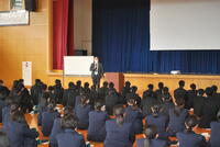 どんなことが起こるか分からない、何が正解かもわからない世の中で、どのように学校生活を送るのか、どのような天高生になるのかという岩間先生からの問いかけを、1年生は真剣なまなざしで聞いていました。