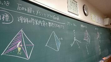 この膜の重心付近の角(マラルディの角)を、数学Ⅰの三角比や数学Bのベクトルを用いて探究しました。