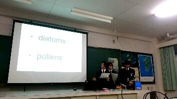 放課後、地学教室をのぞいてみると、マラヤ大学で行う研究発表に向けた最終準備が行われていました。