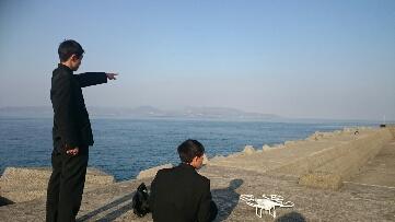 今日は、二江漁協組合に御協力頂き、漁港からフライトしました。