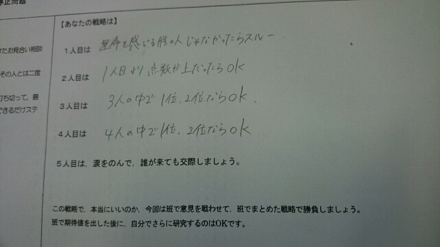 このことについて、各自で考え、グループで考え、最適な解答を導き出すために全力を尽くしました。
