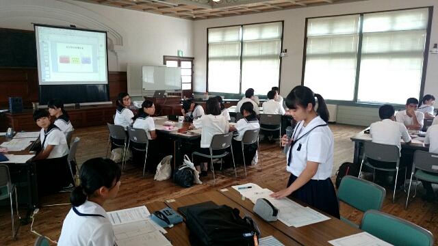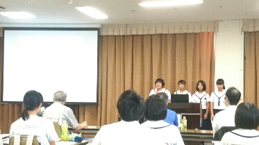 本校は、日本語を3人、英語を2人と役割分担して発表しました。