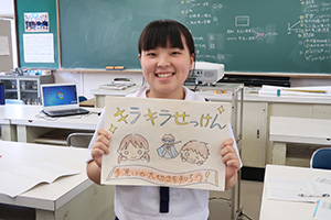 初めての全国大会で緊張しました。しかし、今までの練習を活かして、研究結果を身振り手振りを駆使して伝えることができました。