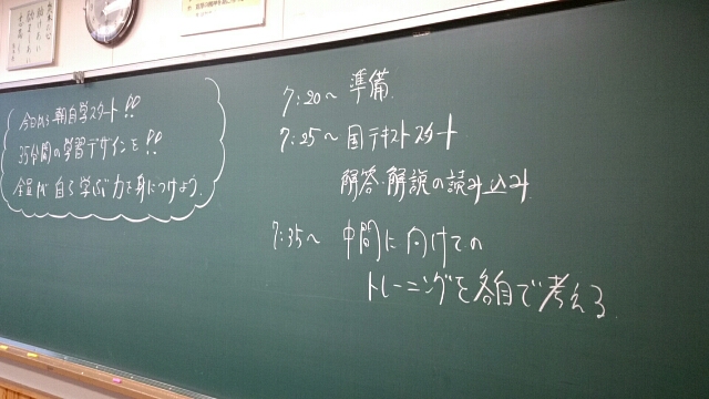 5月8日(火) 本日より1年生も朝自学がスタートしました。