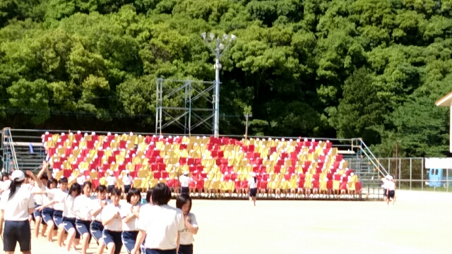 今日は、開閉会式の練習とマスゲームの通し練習、応援練習を行いました。