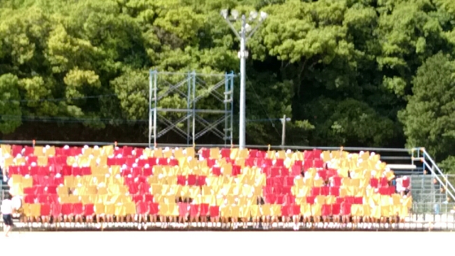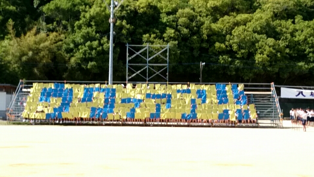 応援演舞の前の人文字にも、パネルとリンクした言葉が浮かび上がります。