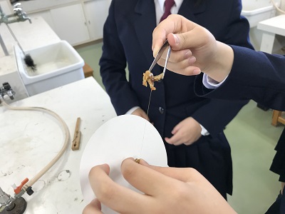 化学基礎で初めての実験で、マッチでガスバーナーを点火することに悪戦苦闘しながらも、最終的に実験は無事終了しました。