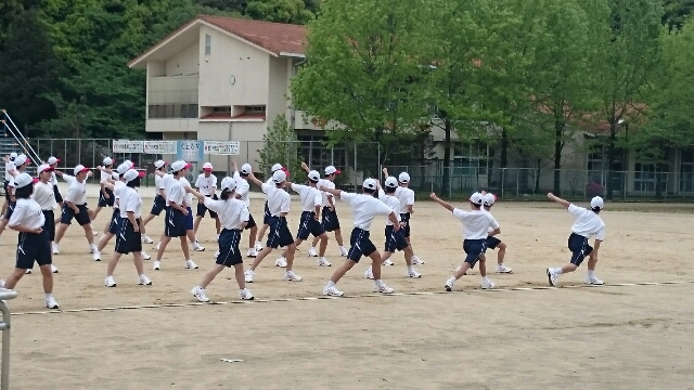 今日は、1年生と2年生が体育科や各学年の先生方とともに部分的に練習しました。