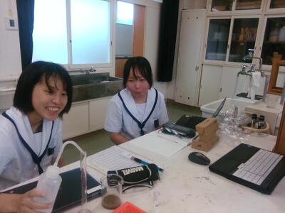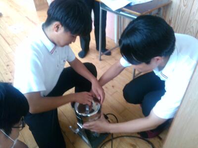 今週も、お待ちかねのASⅡ・Ⅲがやってきました。科学実験室では、2年生の「ベビーリーフ班」が、実験で使用予定の土のPH計測を試みています。なかなか安定した数値が出ないことを受け、次はろ過した後に計測してみることにしたようです。(今度はうまくいきますように!)