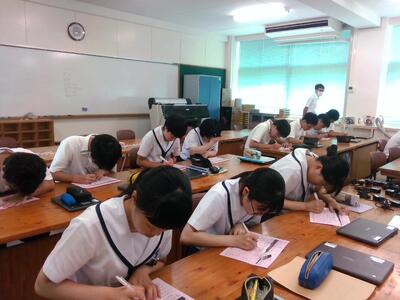 The stage presentation groups are getting ready for their ARP (Amakusa Research Process) Presentation on July 10th. Today we had a group of 3rd-year AT (Amakusa Exploration), who are researching the relief of fatigue. They explained the degree to which fatigue dissipates after stretching and the results of their experiments on sleep using an application. As you can see, they’re a little nervous, but we’re sure they’ll be ready soon and have a wonderful presentation on stage!
